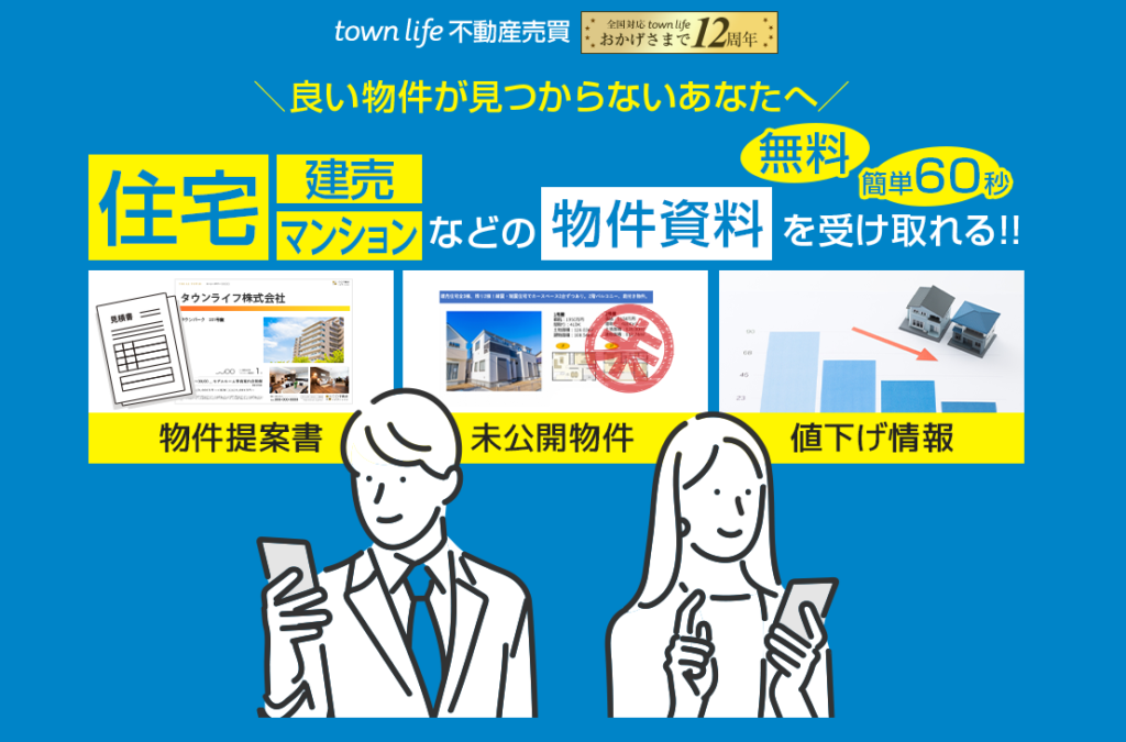 タウンライフ不動産売買は、複数の不動産会社に一括で査定依頼ができる便利なサービスです。